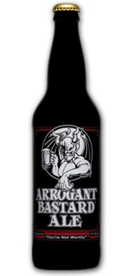 Stone Brewing Company i Escondido, California, er kjent for kompromissløs bruk av råvarene (særlig humle), med til dels ganske "voldsomme" øl som resultat. Arrogant Bastard er deres mest berømte øl, og selger nok litt ekstra på navnet også. At det virkelig er et øl for "arrogante jævler", signaliseres allerede i reklame-introen: "Dette er et aggressivt øl. Du kommer sannsynligvis ikke til å like det. Det er høyst tvilsomt om du har god nok smak, eller er tilstrekkelig sofistikert, til å verdsette en ale med en slik kvalitet og dybde". Javel, nei. Jeg har nå smakt på den likevel. Stilmessig karakteriseres ølet som en "American strong ale", men har også en del til felles med IPA. (Vi har også Stone IPA, så prøv begge og sammenlign.) Men bryggeriet har utvilsomt truffet noe i markedet. En mangeårig årlig vekst på over 30% kommer ikke av seg selv, og da direktøren og bryggerisjefen var på besøk hos oss sommeren 2009 erfarte vi at dette slett ikke var noen arrogante djevler, men rett og slett kjempehyggelige og romslige amerikanere, som ville ha bilde av seg selv på Kjerag. Stone Brewery you know. Dette er hva jeg fant: