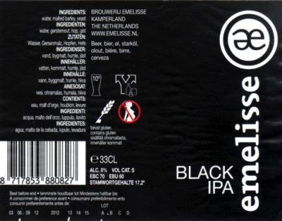 Fra Bierbrouwerij Emlisse i Kamperland, Nederland, kommer denne utmerkede Black IPA - ølstilen som egentlig er en selvmotsigelse (et øl kan ikke være "black" og "pale" samtidig, derfor kaller mange den heller American Black Ale).
