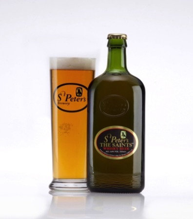 The Saints Whisky Beer fra St. Peter's Brewery i Suffolk, England, er deres nyeste øl, og ett av de mer uvanlige i vårt utvalg. Det er brygget med en solid dose torvrøkt malt, og for godt mål er det tilsatt en skvett engelsk single malt whisky. Hallooo, ENGELSK (ikke skotsk) maltwhisky??!! Tuller vi? Nei, St. George's Distillery i Norfolk lager nå Englands første maltwhisky på over 100 år, og det er den som vi får et touch av i dette ølet. Og bryggeriet, de holder til i St. Peter's Hall fra ca. år 1250. Bygningen er altså omtrent like gammel som Håkonshallen i Bergen (ligner litt ogsåWinking - men om vi hadde foreslått å åpne håndverksbryggeri i Håkonshallen, ville nok Riksantikvaren og helsemyndighetene alliert seg om å få oss tvangsinnlagt et sted. I England derimot går slikt an - men de har unektelig en del flere middelalderbygninger å ta av.